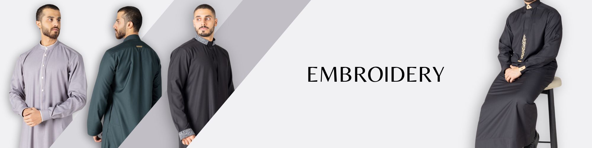 Introducing our Embroidery Collection of thobes for men, where elegance meets artistry. Explore a captivating range featuring beautiful and stunning Arabic calligraphy, precise crafted with luxurious details.